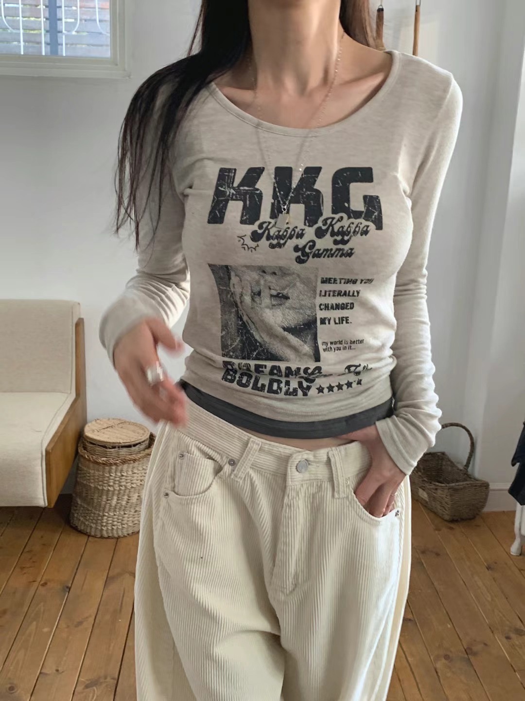 FORMAL韓國直郵㊣東大門實拍女裝新品時尚推薦休閑人氣長袖T恤大樓:theOT