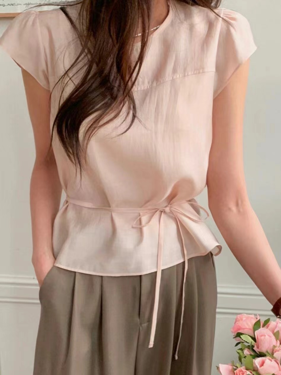 HERME直郵韓國代購㊣女裝新款休閑人氣熱賣襯衫蕾絲衫含腰繩大樓:theOT