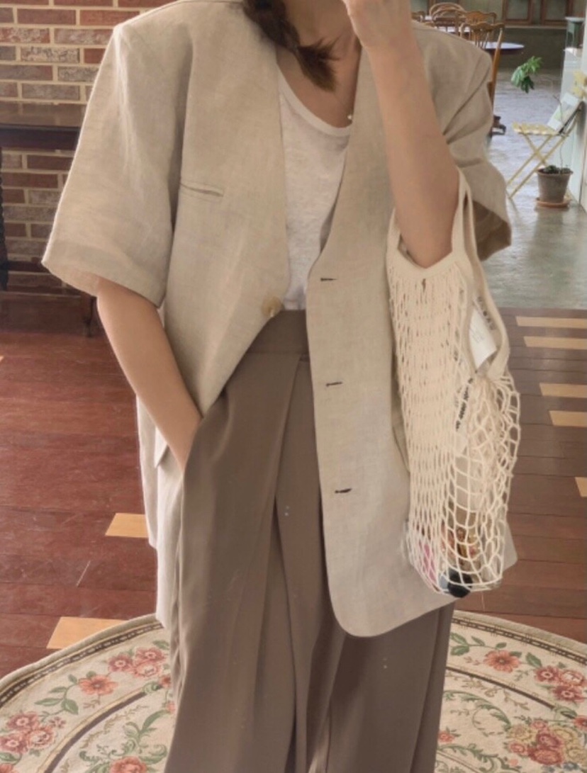 WOOD東大門代購女裝新品休閑人氣時尚真品25春夏夾克亞麻布大樓:theOT