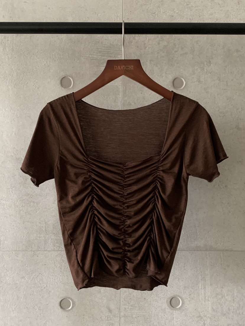 PYT-ot韓國直郵㊣女裝新品時尚推薦25秋冬人氣長袖T恤V領褶皺pretty young thing長袖T恤