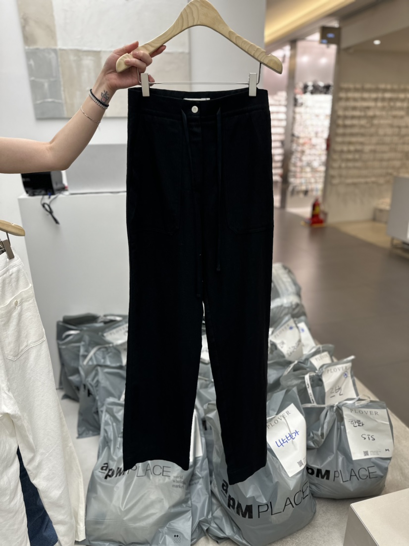 PLO_VER韓國直郵東大門實拍女裝新品休閑職業休閑褲喇叭形亞麻大樓:ApmPlace