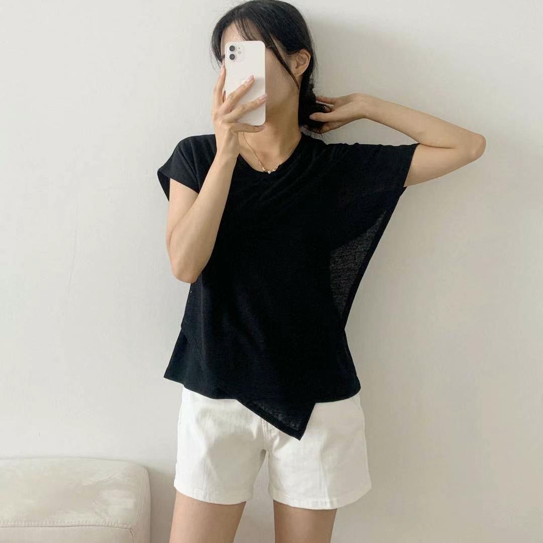 PINK POUCH直郵韓國代購女裝新品人氣休閑24春夏T恤亞麻大樓:theOT