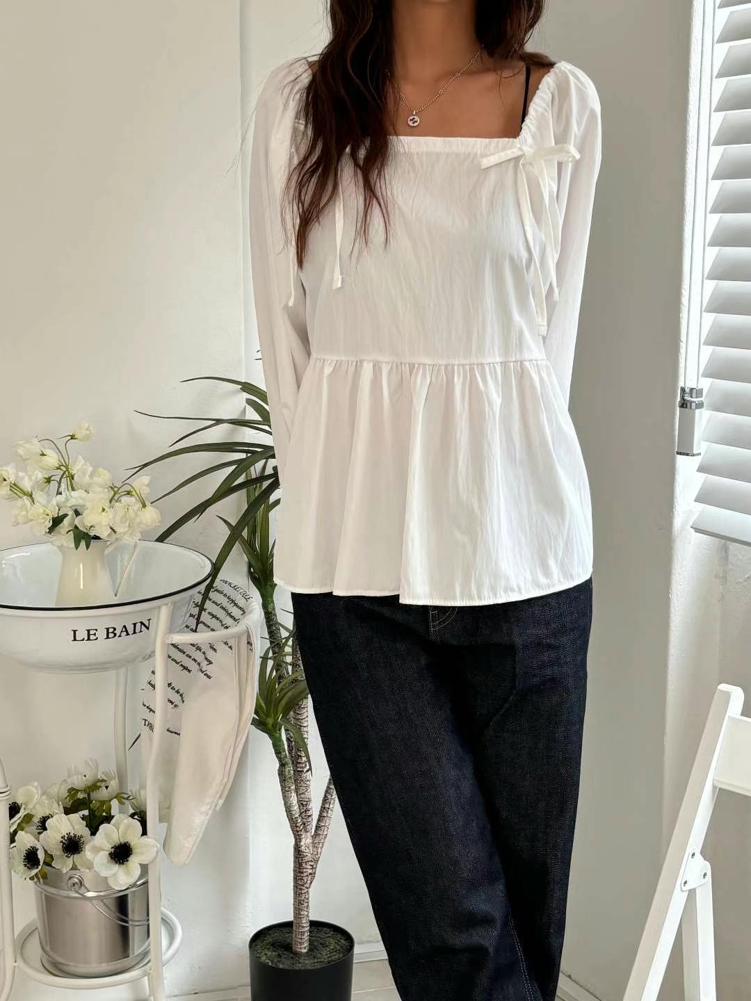 YANGPA韓國直郵東大門實拍女裝新款休閑時尚襯衫蕾絲衫奶油色大樓:theOT