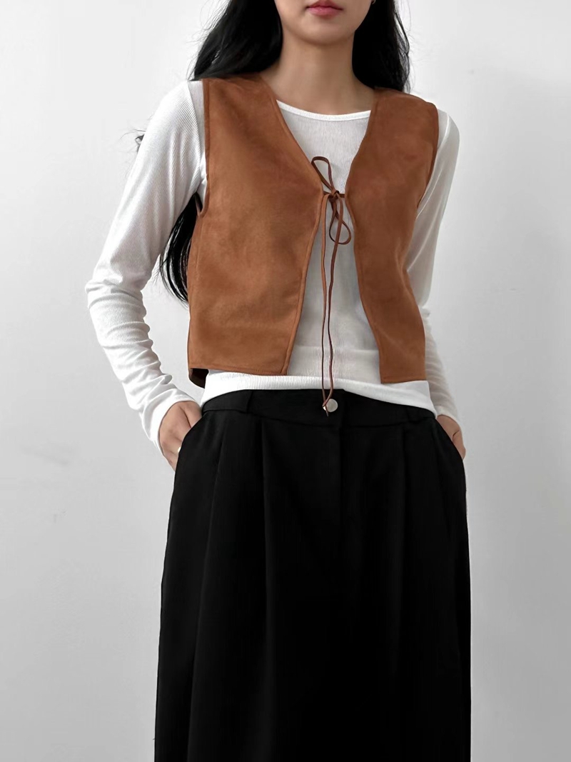 WOO SUNG韓國直郵東大門實拍女裝新款熱賣24秋冬職業馬甲麂皮大樓:theOT