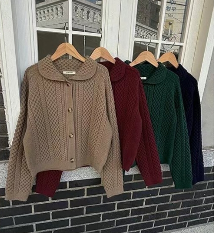 FLATYOU韓國直郵東大門實拍女裝新款職業推薦休閑25春夏毛衣開衫大樓:theOT