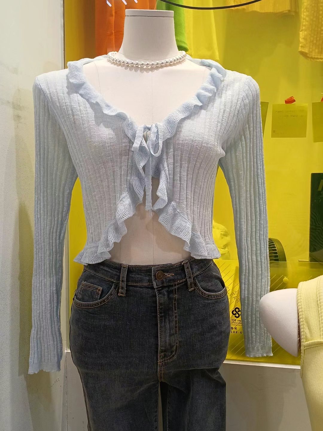 SEOULER東大門代購女裝新品25春夏推薦針織衫荷葉邊短款開衫大樓:theOT