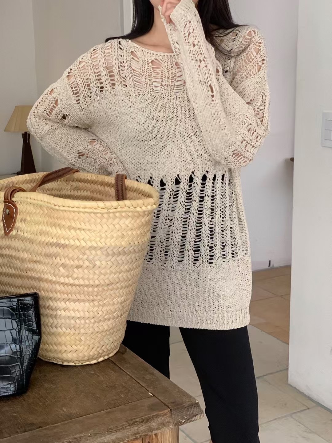 AUTHENTIC-OT韓國代購㊣女裝新款真品休閑人氣職業25春夏針織衫大樓:theOT
